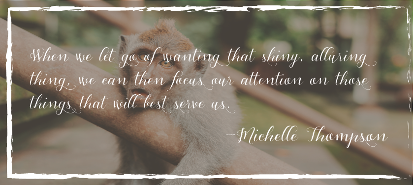Humans are similar and we hold ourselves in place by clinging to those things that bring us immediate, yet temporary, pleasure or relief. When we are grasping at those shiny baubles of distraction we lose focus on what we really need to do in order to free ourselves – just LET GO. When we let go of wanting that shiny, alluring thing, we can then focus our attention on those things that will best serve us. We make better choices and better care for ourselves.